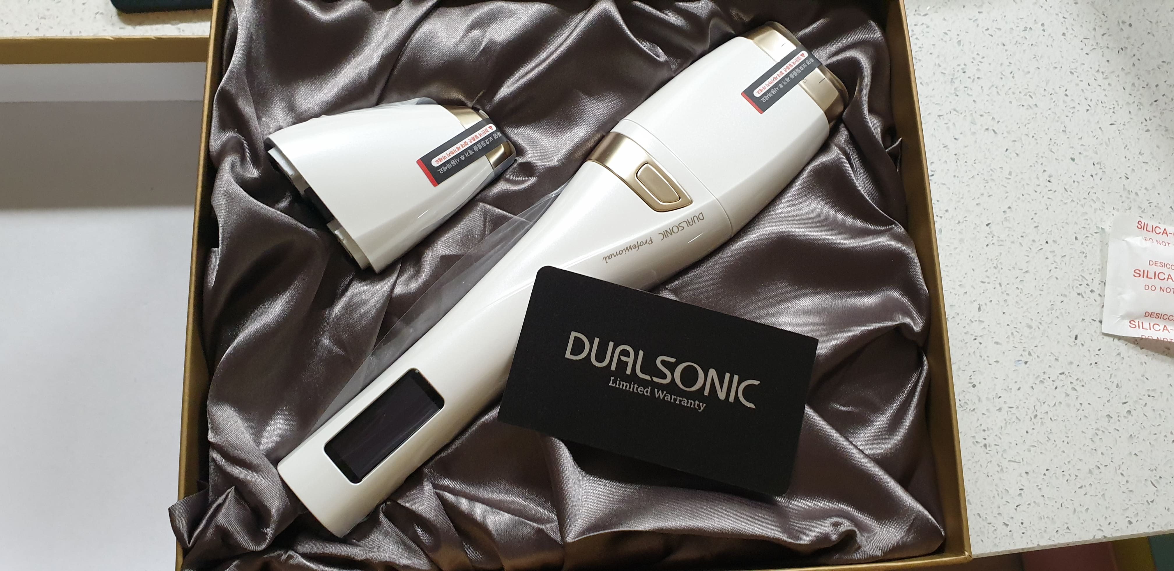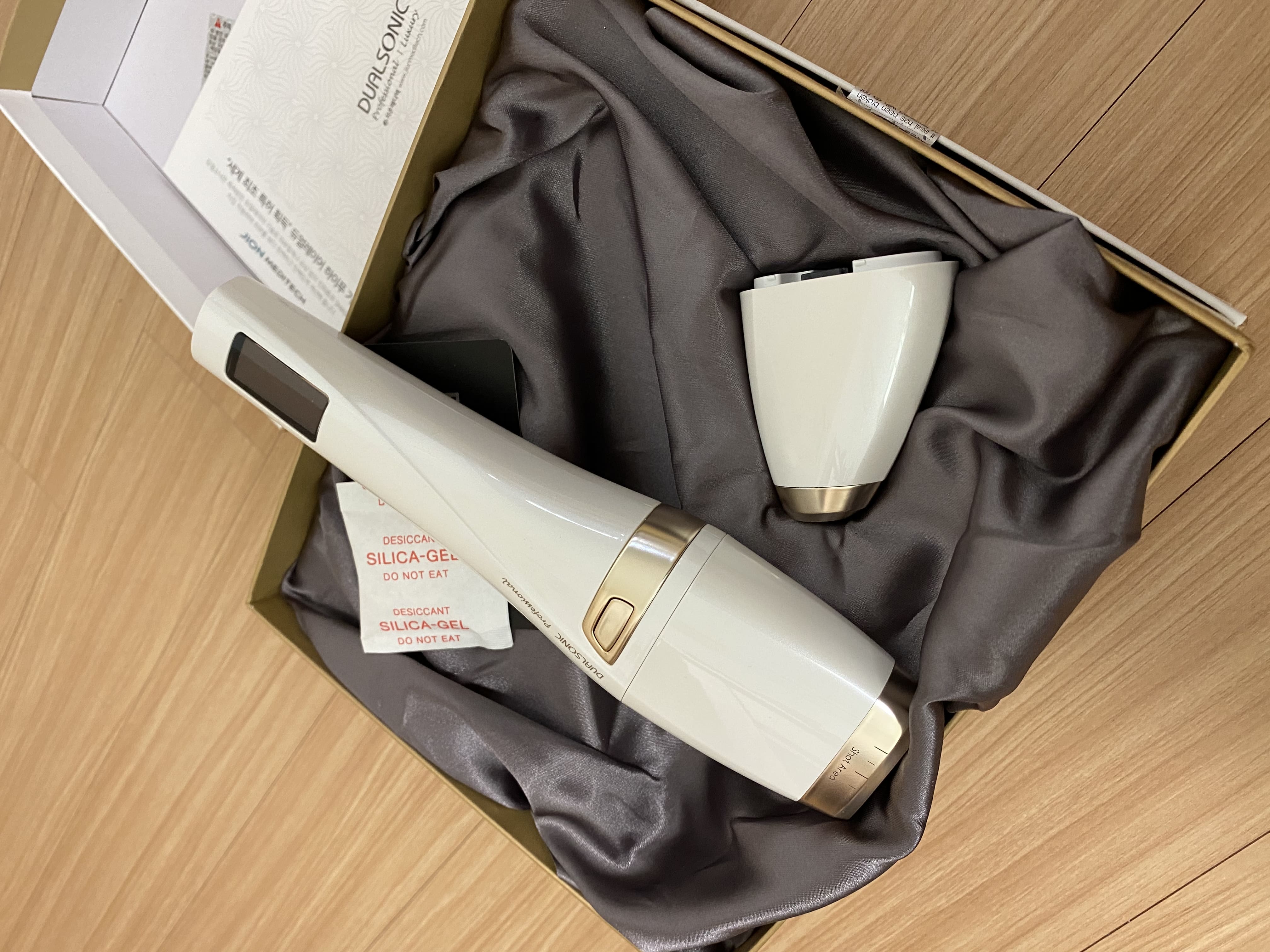 듀얼소닉♡ 가격이 비싸서 고민 끝에 구매했어요! 투턱때문에 피부과에서 슈링크 받았눈데ㅠ요즘 코로나 때문에 가기도 그렇고 그래서 남편 한테 말했더니 쿨하게 사주더라구요^^ 배송도 바로 오고 9월5일~6일에 프로페셔널 구매시 3000샷이랑 젤도 서비스로 와서 더 이득으로 구매한거 같아요!! 피부효과를 기대해볼께용!! ㅋ