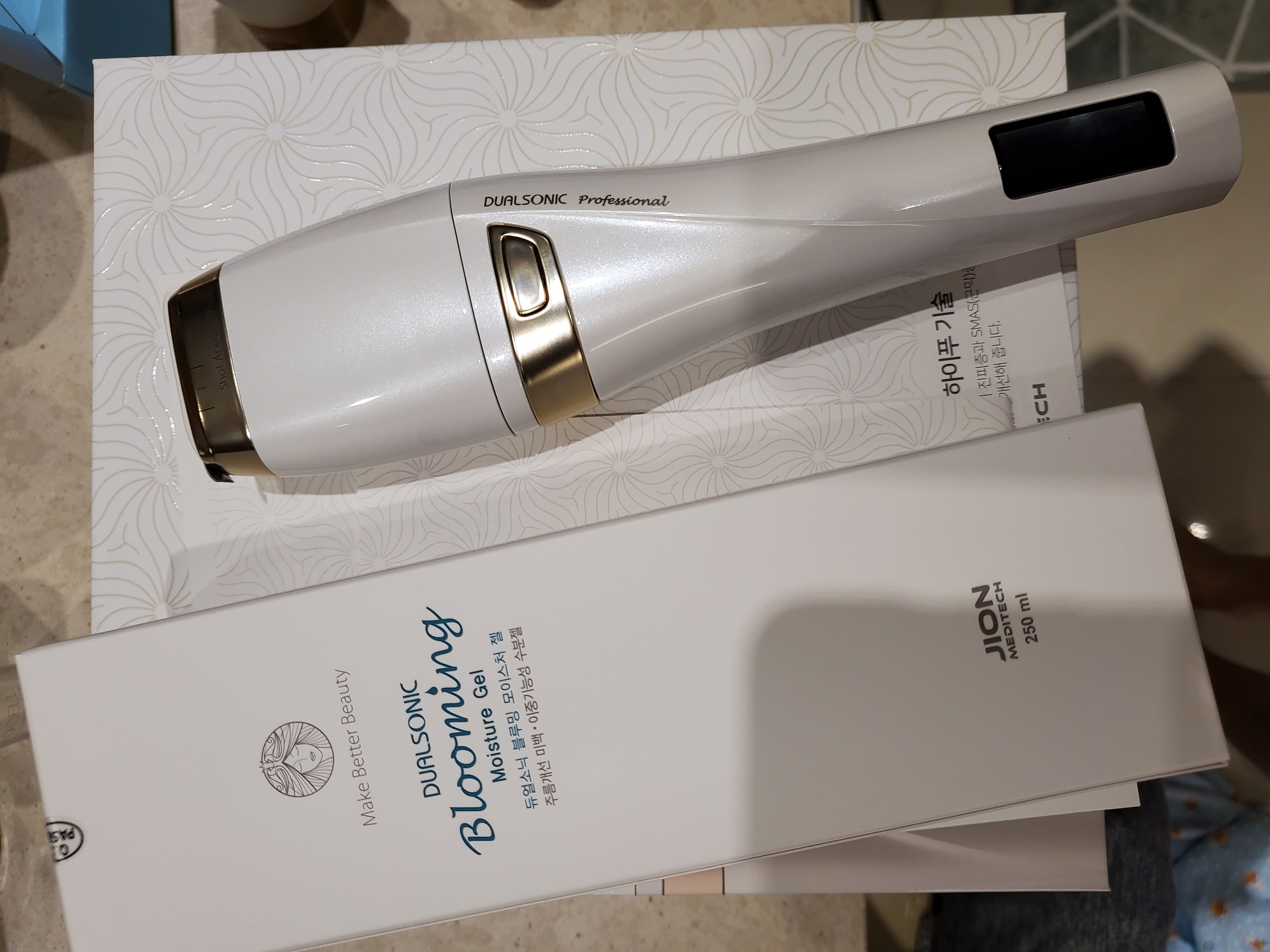 구매전 이것저것 많이 문의했었는데 친절히 상담해주셨고 구매후 담날 바로 택배가 왔네요피부가 민감해서 좀 걱정했었는데 생각보다는 크게 아프진 않더라구요기계를 세워서 써야하다보니 거울보며 하는게 좀 불편했어요2주에 한번씩 쓰라해서 아직 한번 사용했는데 꾸준히 해야 효과가 나오겠죠기계가 묵직하고 고급스럽네요그래도 효과가 더 중요하니 꾸준히 써보고 효과있음 주변에 추천하고 싶어요