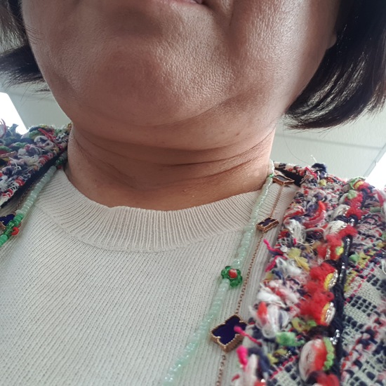 언제부턴가 이중턱과 목 주름이 겹쳐 고민이었는데 좋은 제품이라는 생각에 구매했어요. 첫번째 사용, 두번째 사용한 사진을 비교해 보았는데 처진 턱살이 약간 줄었고 피부 광택이 나네요. 꾸준히 사용해서 좋은 결과 있기를 바라면서요.
